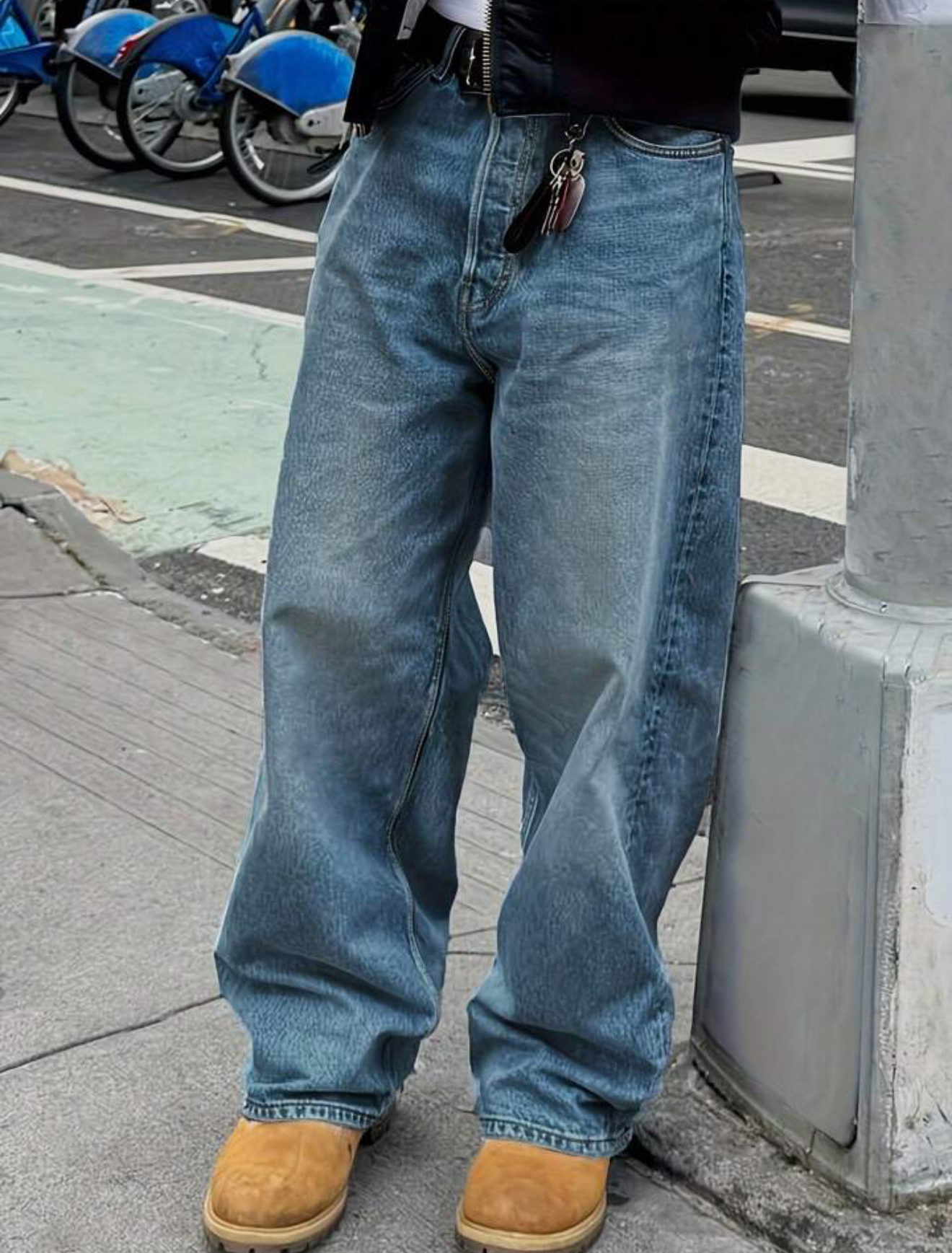 Classic retro-style loose-fit jeans designed for comfort and versatility. Perfect for year-round wear, these jeans effortlessly complement any outfit.