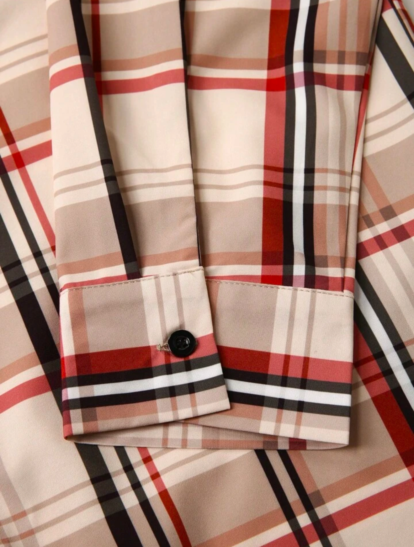 A versatile and stylish plaid long sleeve shirt, perfect for casual autumn outings and effortless layering.
