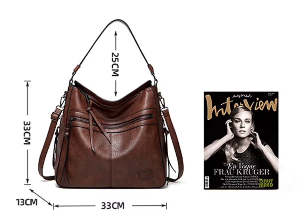 This elegant leather shoulder bag combines fashion and function, making it the perfect accessory for travel, weekend getaways, and daily outings. Designed with high-quality materials, it offers a spacious interior to keep all your essentials organized while maintaining a sophisticated look. The adjustable shoulder strap provides comfort, and the durable construction ensures long-lasting use. Whether you’re heading to work, shopping, or exploring the city, this stylish and versatile bag enhances any outfit and suits any occasion.